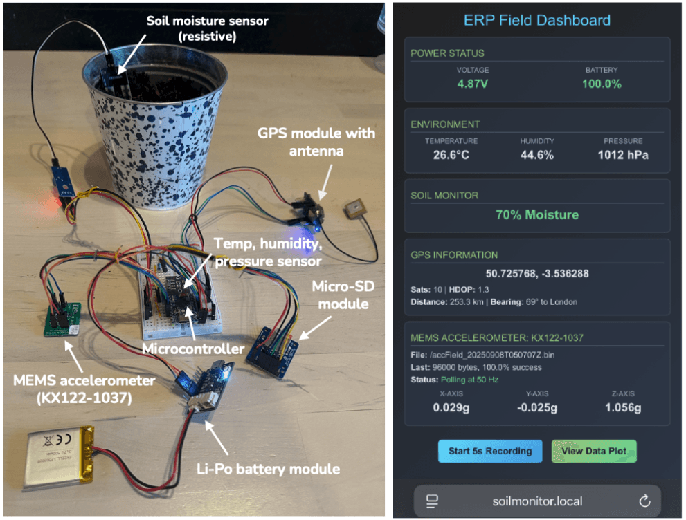 Figure 4: An example MEMS sensor kit and web-based field dashboard. (Source: Author's own)